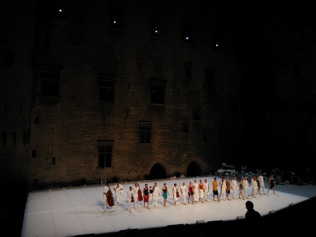Summer breeze accelerated circling in Avignon, weather forecast seemed to be accurate. a rain in the middle of a performance is not exceptional in the history of the festival according to the tour guide of Avignon. Finally, the rain didn’t pour before the giant LED timer was shut. When I spoke to one of the dancers afterwards, indeed they were informed in advance but it was their first time performing at the Cour d’Honneur. So experience of performing in the rain didn’t exist. I wish the weather forecast were even more accurate though.