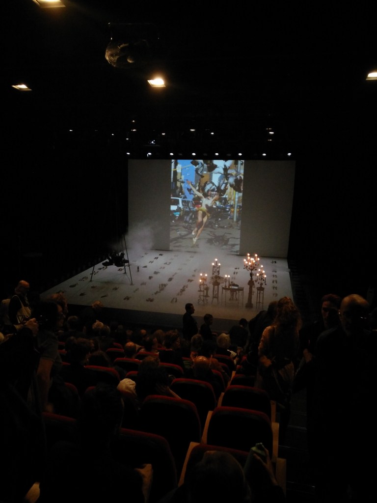 Time to join Théo. And story continued in another room: we sat around the stage where lay a Cyr wheel. The wheel is symbolic during the next part starting with living under the same roof. Illustrated with drama and movement, a « Ito-Thouvet » relationship language has been established over time. When the wheel is involved, this is the moment when Kaori considers Théo as the person to maintain a longer relationship. Surprisingly, I felt like watching the whole performance « being » Kaori as I selected starting the piece with her. In La Scala Paris, it was the opposite. When the wheel circles faster and faster, like the reality of our daily life, the piece ended marvellously.
